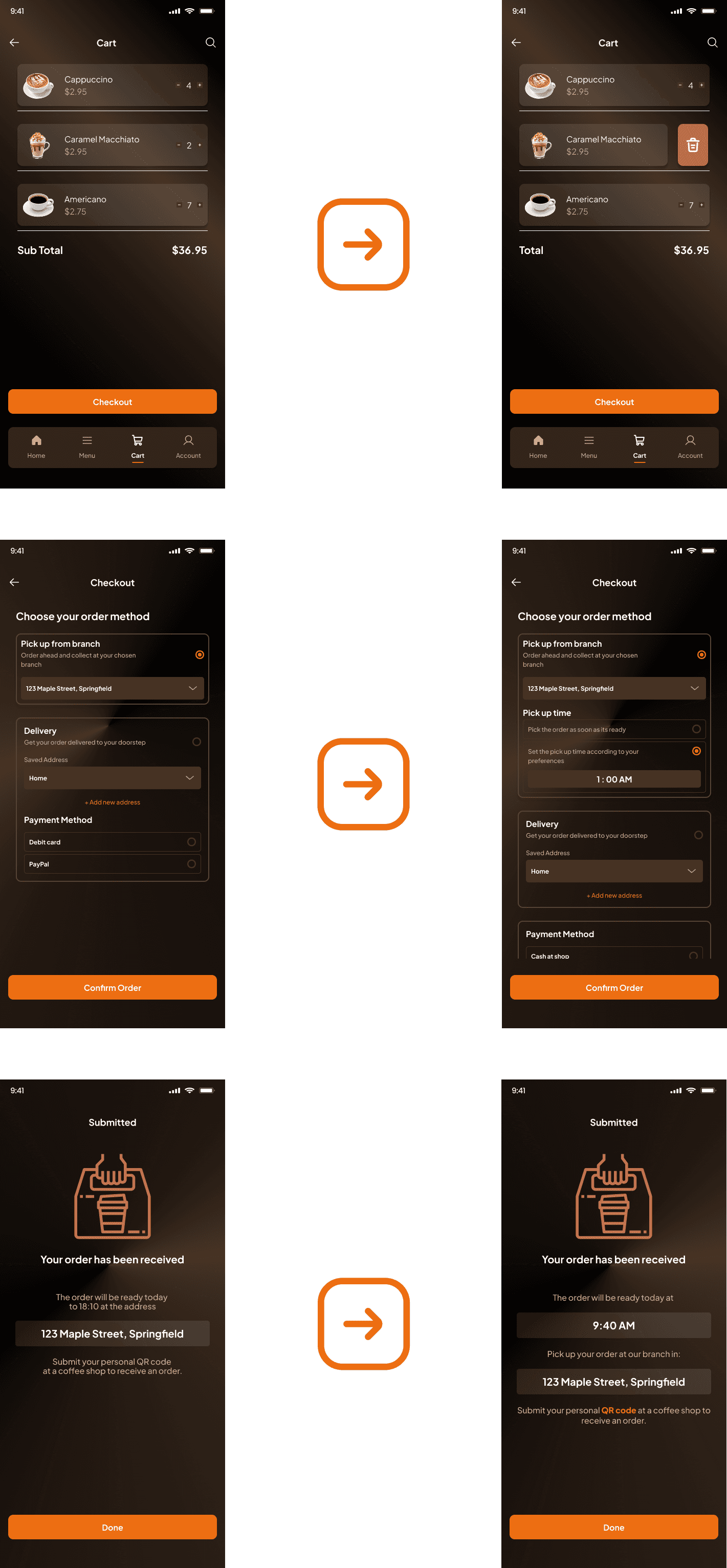 After validating the structure, I developed a visual system that emphasized clarity, trust, and efficiency. The UI was designed to reduce anxiety during ordering while maintaining a modern, professional tone.