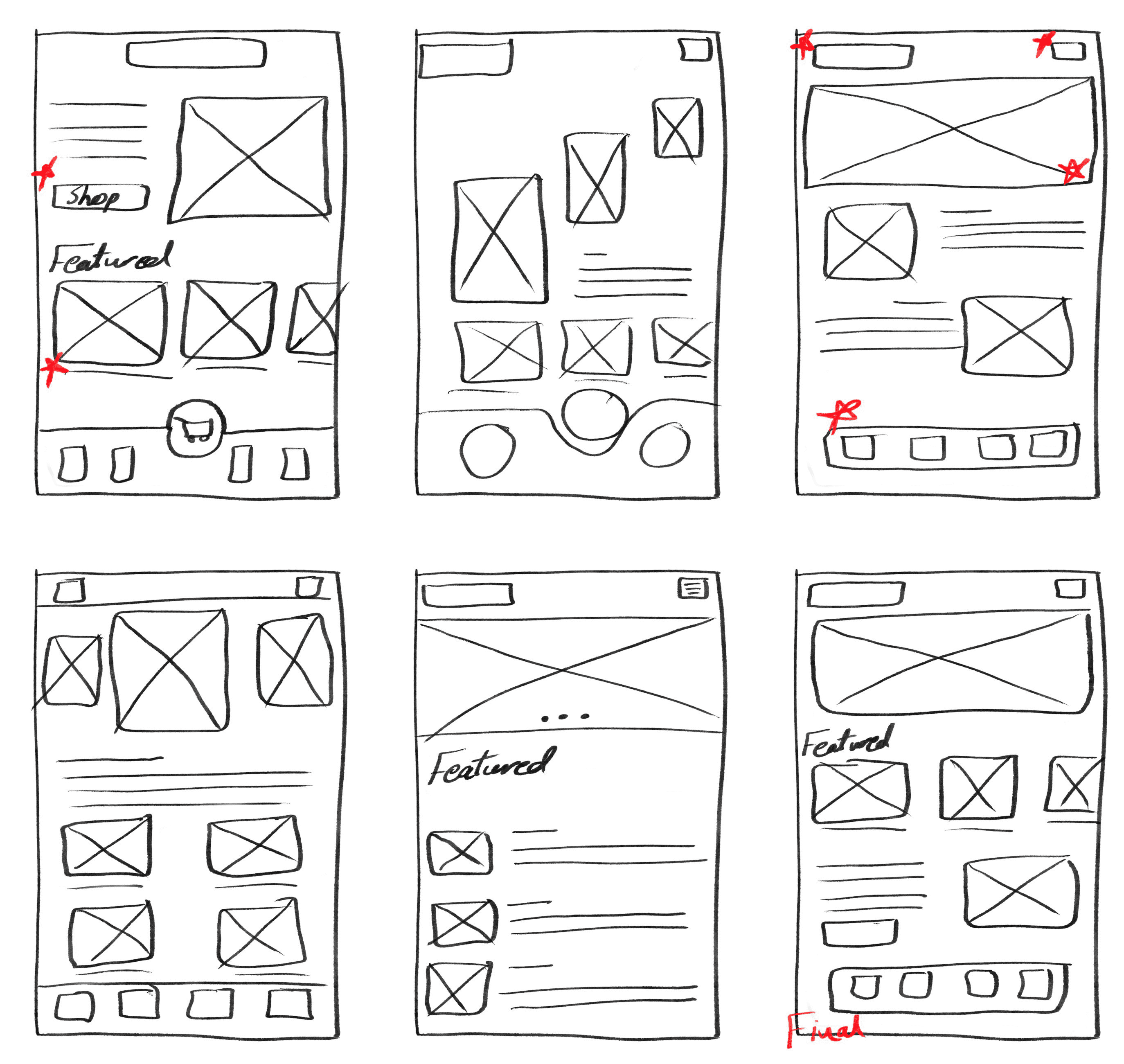 Focusing on the core features identified during user research, I sketched the first wireframes using pen and paper.
