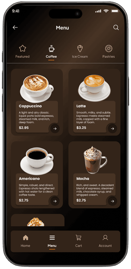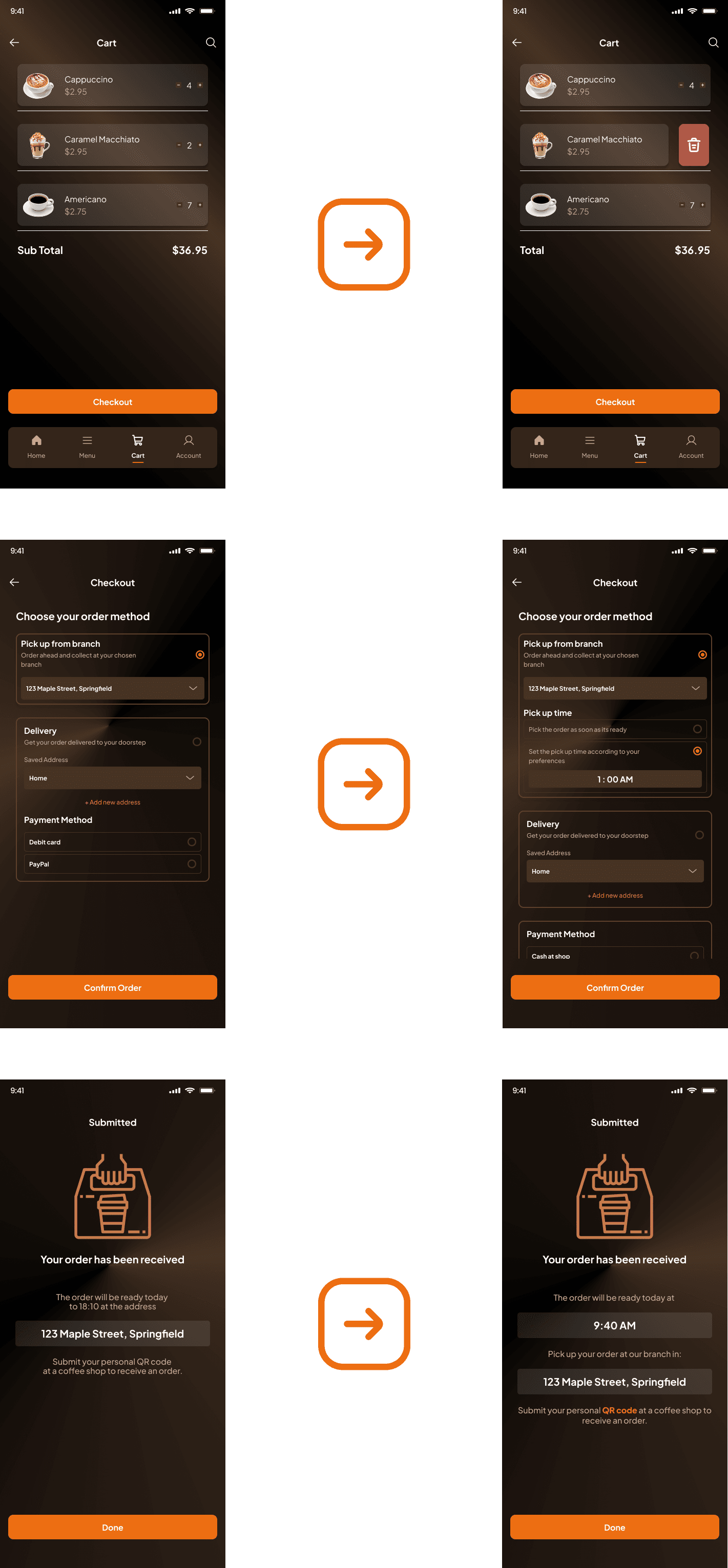 Building upon the insights gained from the usability study and the refined wireframes, I then focused on creating the high-fidelity prototype. The goal was to develop a final design that was not only simple and intuitive for rapid ordering but also visually engaging and trustworthy to reduce user anxiety regarding order accuracy and successful pick-up.